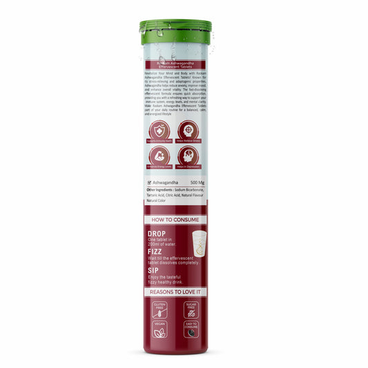 Raskam Ashwagandha Effervescent Tablets | Helps Relieve Stress & Anxiety, Mood Lifter, Immunity Booster - Elevate Your Wellness