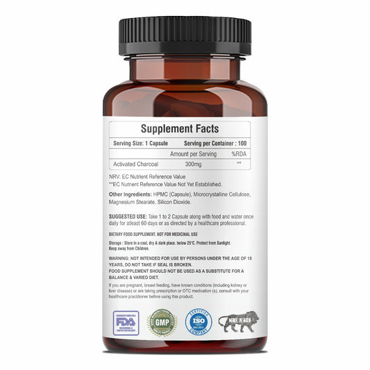Raskam Activated Charcoal with Apple Cider Vinegar | Helps in Digestion, Bloating, Liver & Kidney Detox | 100 Veg Capsules