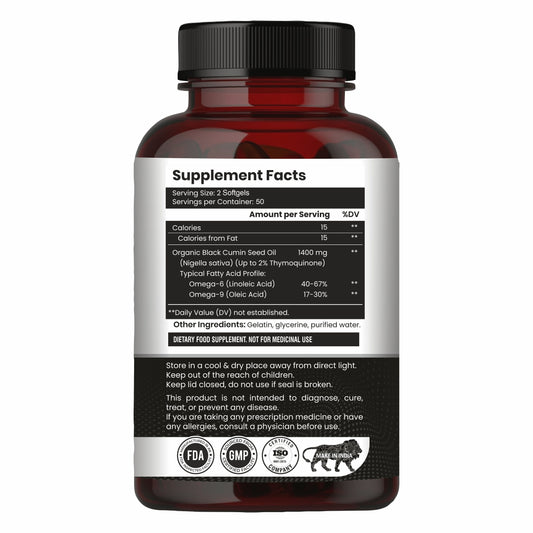 Raskam Black Seed Oil | Premium Cold Pressed Nigella Sativa 500mg | Heart, Skin & Joint Support | 60 Softgel