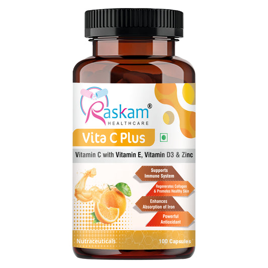 Raskam Vita C Plus - 100 Capsules - Antioxidant & Immune Support - Overall Health - Skin Anti-Ageing -Supports Healthy Skin & Joints