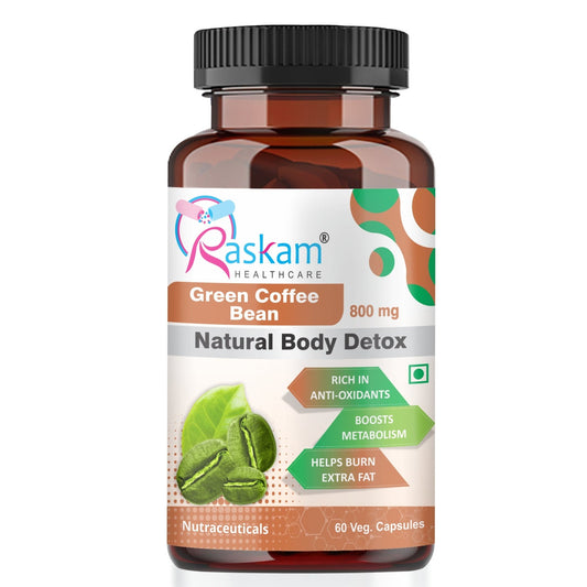 Raskam Green Coffee Bean 800 mg -60 Capsules with 50% CGA- Burns Extra Fat & Boosts Metabolism