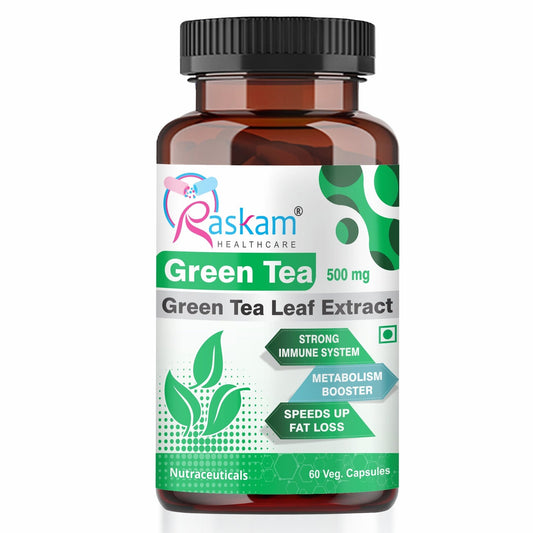 Raskam Green Tea Extract 500mg -60 Capsules with 90% Polyphenols & 45% EGCG- Weight Loss (Fat Burner) & Antioxidant
