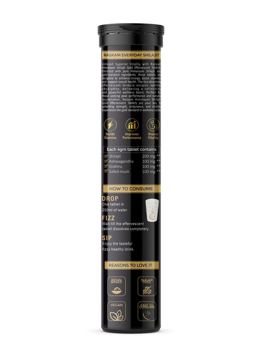 Raskam Shilajit Gold Effervescent Tablets | Ayurvedic Himalayan Shilajit Original Effervescent Tablets For Men | Helps In Boosting Strength, Stamina & Power | Pure Shilajit Gold For Men | No Added Sugar | Orange Flavor | 15 Fizz Tablets (500mg)