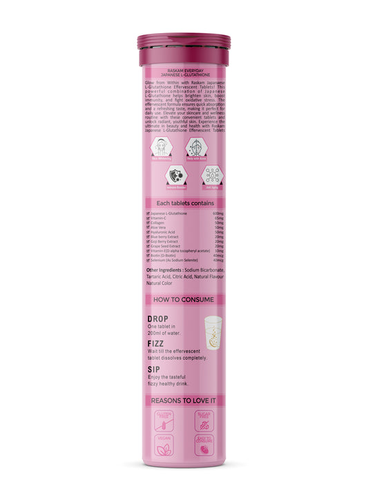 Raskam Glutashine Up 11 In 1 |Japanese L-Glutathione With Collagen | Aloe vera| Biotin | Vitamin-C | Hyaluronic Acid For Skin Glow & Hydration | 15 Fizz Tablets | In Strawberry Lemonade Flavor
