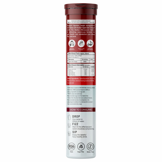Raskam Apple Cider Vinegar Effervescent Tablets | ACV for Digestion, Gut Health, Metabolism & Weight Management | No Added Sugar | Green Apple Flavor | 15 Fizz Tablets (500mg)