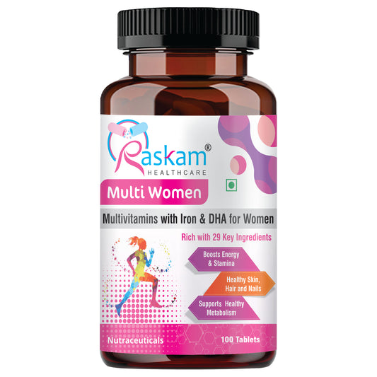 Raskam Multi Women - 100 Tablets-No.1 Multivitamin for Women with Biotin, Vitamin C & 29 vital Nutrients for Overall Health, Radiance, Strong Bones & Immunity