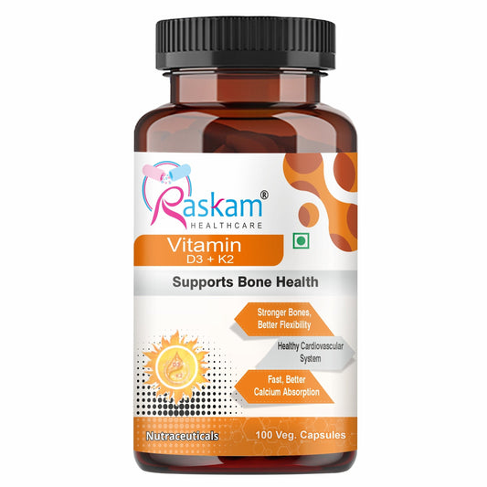 Raskam Vitamin D3 with K2- 100 capsules- Supports Stronger Immunity & Bone & Heart Health | Healthy Heart For Men And Women