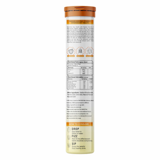 Raskam Vitamin C Effervescent Tablets with Zinc + Vitamin D3 | Natural and Organic Immunity Booster | Refreshing Orange Flavor | 500mg Vitamin C (Pack of 15 Effervescent Tablets)