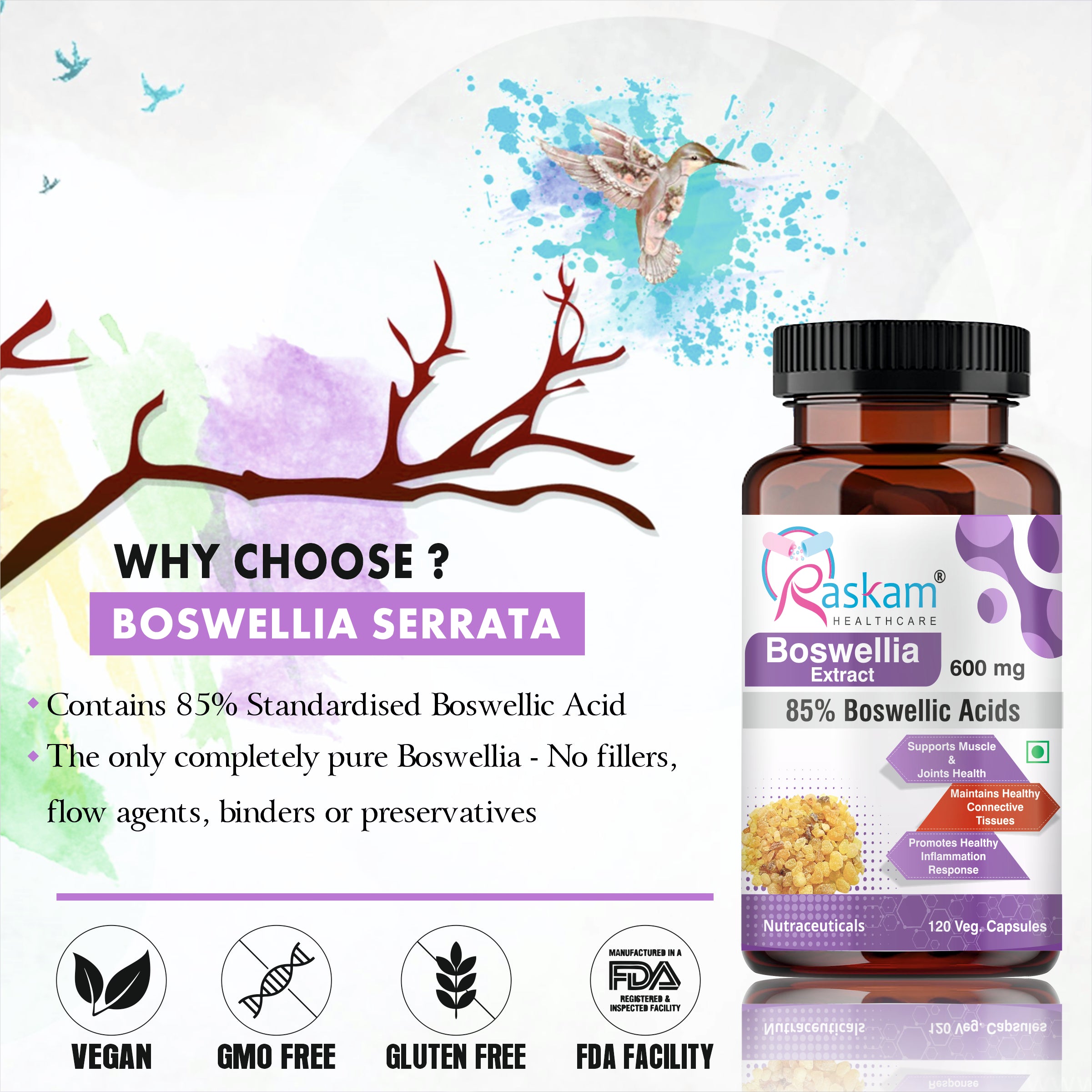 Raskam Boswellia Serrata Extract- 100 Veg Capsules - High Potency Joint Support