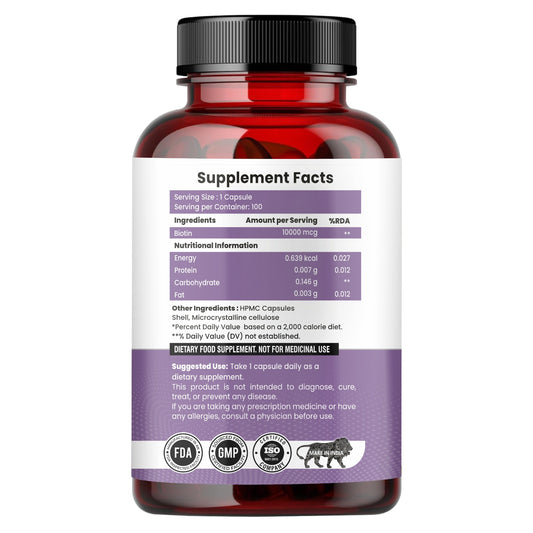 Raskam Biotin - 100 Veg Capsules - Hair Growth, Strong Hair and Glowing Skin, Fights Nail Brittleness