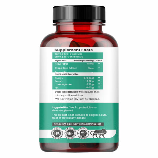 Raskam Resveratrol supplement with grape seed extract | capsules with highly bioavailable | antioxidant support for healthy aging | heart, immune & skin support | 60 veg capsules