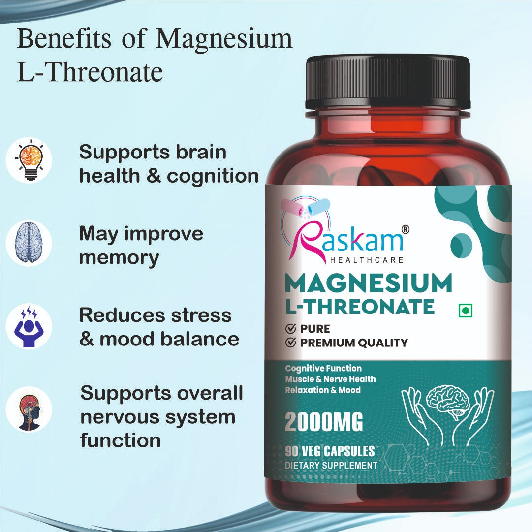 Magnesium L-Threonate Capsules for Brain Health, Memory & Focus Support | Improves Sleep Quality | 90 Veg Capsules