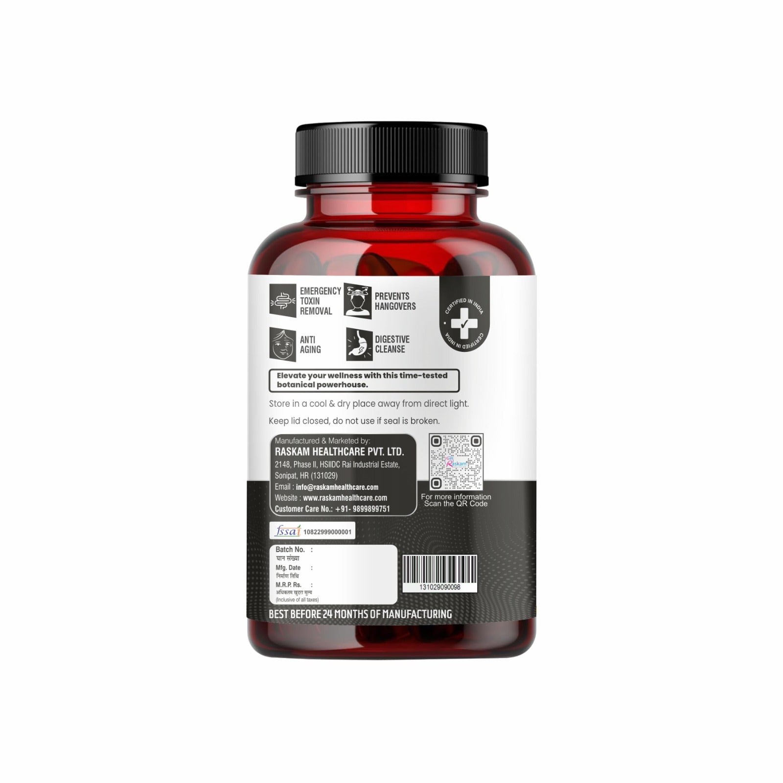 Detox Your Body Naturally: Raskam Activated Charcoal Capsules! Harness the power of activated charcoal to cleanse and purify from within. Our capsules work to absorb toxins and impurities, promoting a healthier digestive system and a clearer complexion. Perfect for those seeking a natural detox, Raskam Activated Charcoal Capsules are your go-to for a cleaner, fresher you. Embrace the power of nature's detoxifier today!