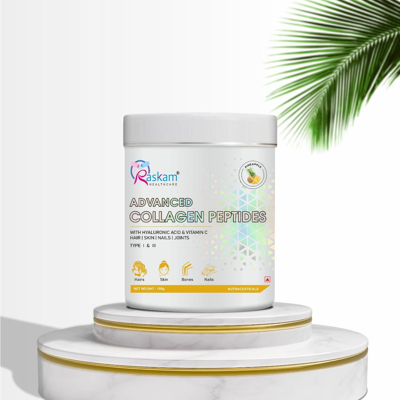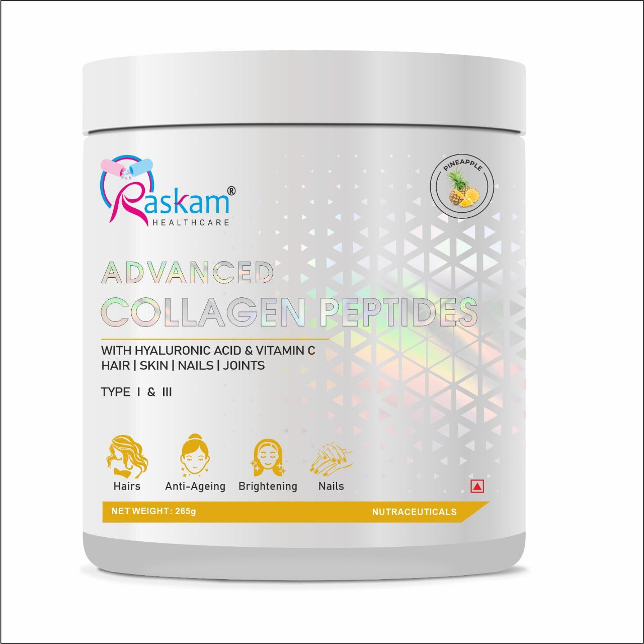 Raskam Advanced Collagen Peptides Powder for Men & Women | Collagen Powder with Biotin, Vitamins C & E for Hair, Nails, Skin Radiance & Anti-Aging Flav- Pineapple (265gm ,100gm)