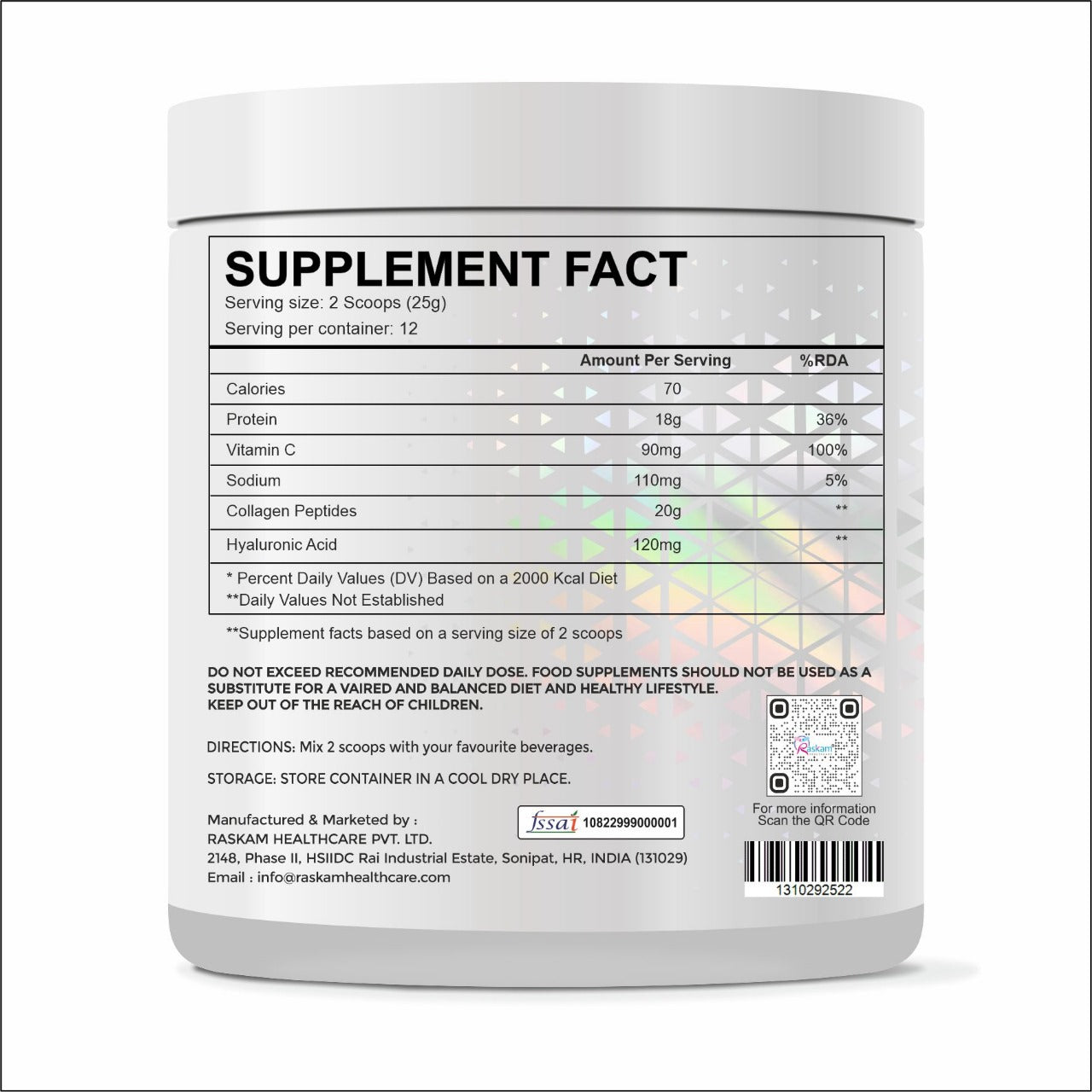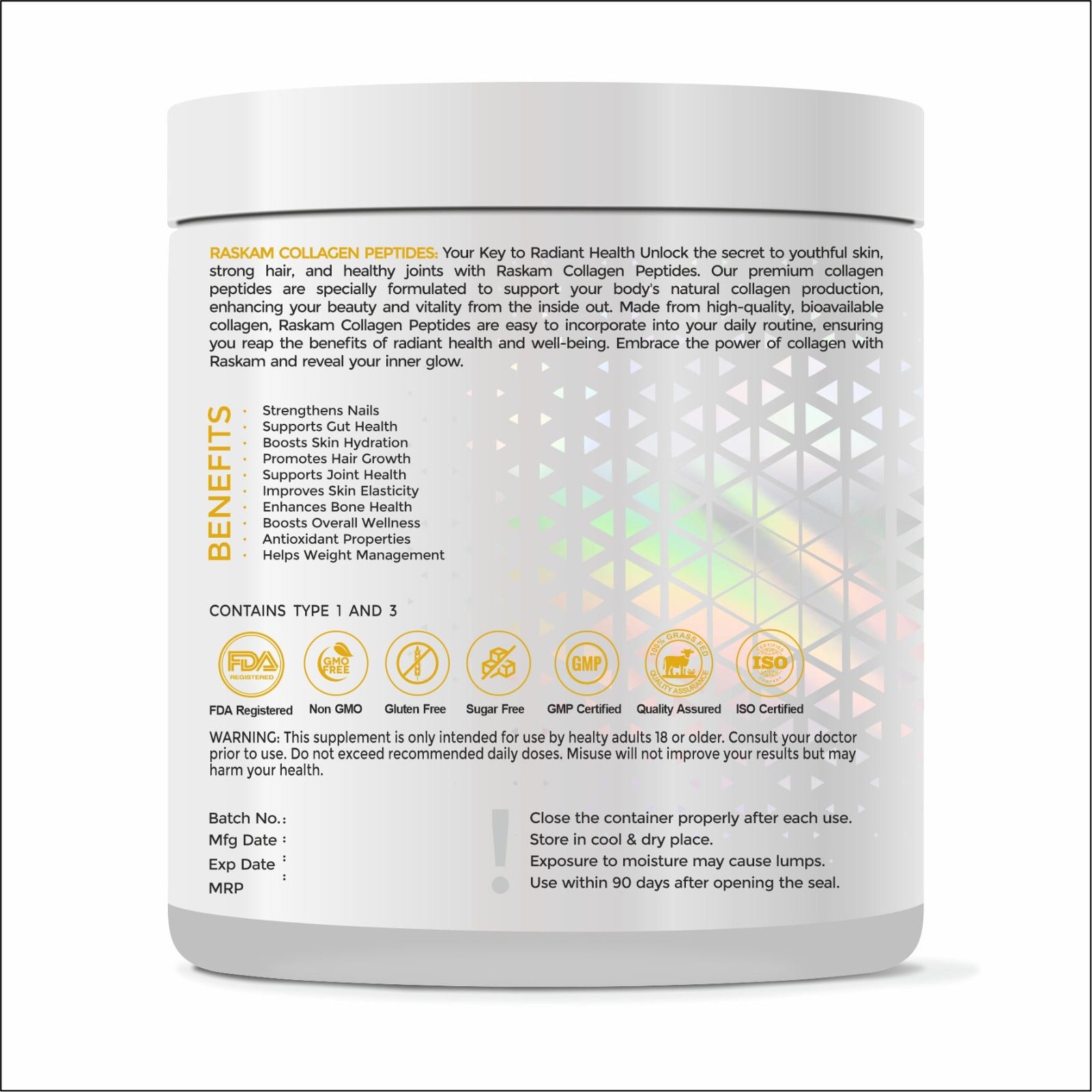 Transform Your Beauty Routine with Raskam Advanced Collagen Peptides Powder! Our cutting-edge formula features high-potency collagen peptides to support skin elasticity, reduce wrinkles, and enhance overall joint and bone health. Each serving delivers essential amino acids and nutrients for a more youthful complexion, stronger hair, and healthier nails. Ideal for daily use, Raskam Advanced Collagen Peptides Powder is your ultimate solution for vibrant, ageless beauty and wellness. Experience the power of advanced collagen and rejuvenate from within!