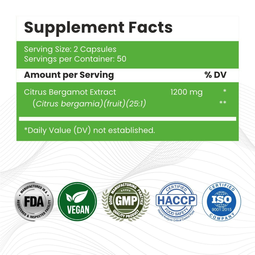 Raskam Citrus Bergamot 1200mg Supplement, 100 Veg Capsules, Antioxidant-Rich Complex for Heart Health and Immune Support