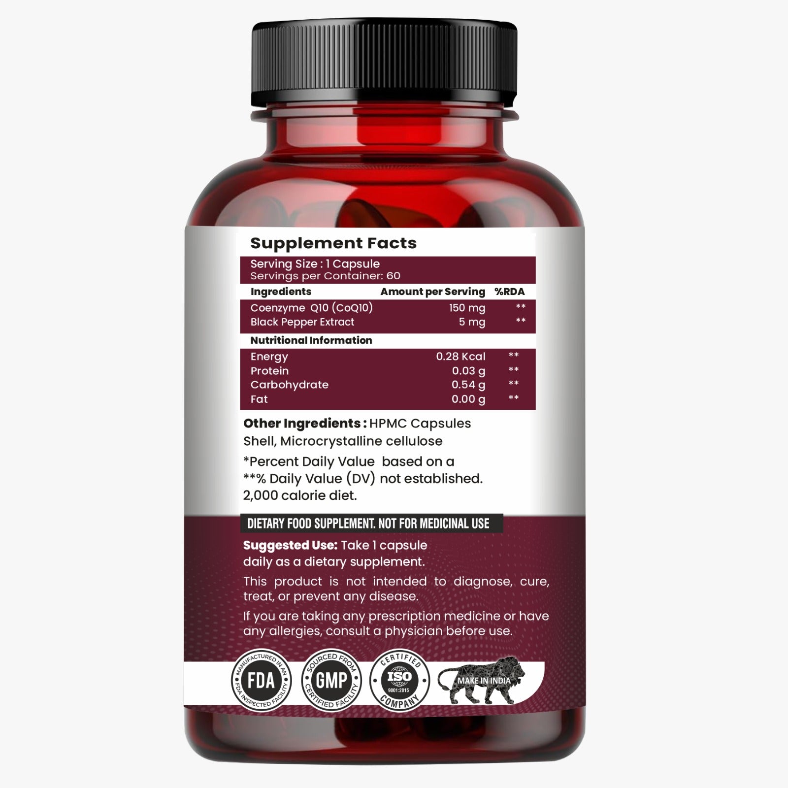 Raskam Coenzyme Q10 (CoQ10) with Piperine | Supports Heart Health and Vascular Health | 100% Vegetarian – 60 Capsules