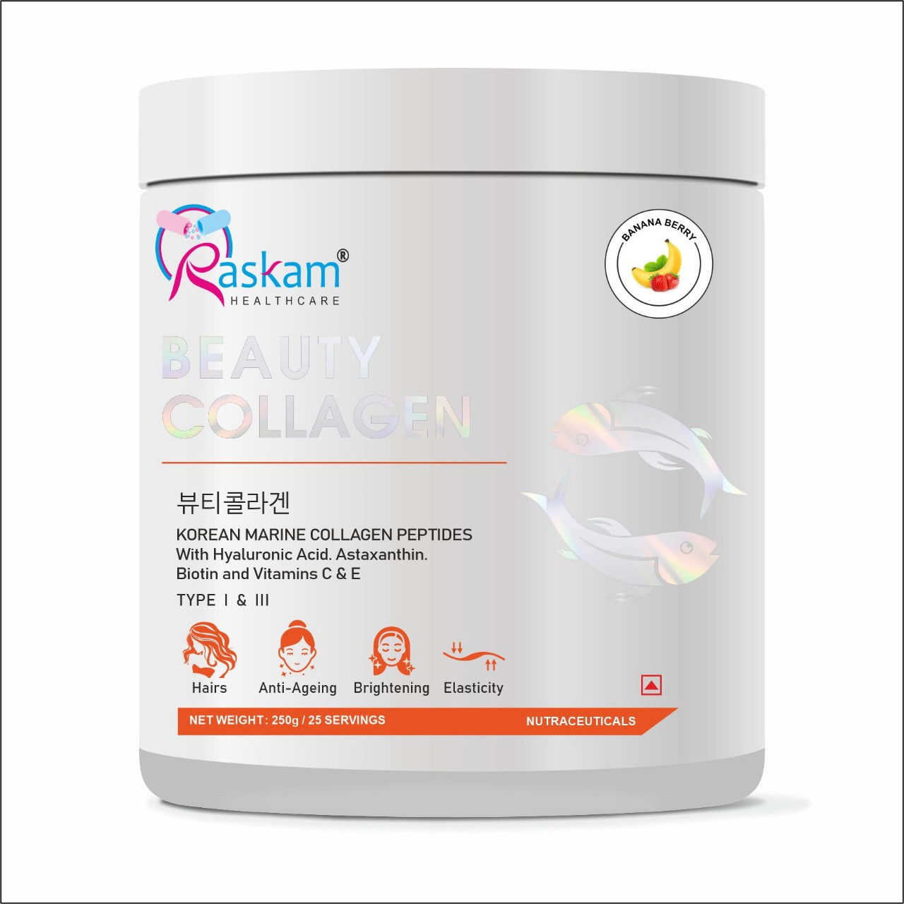 Raskam Beauty Collagen Powder for Men & Women | Collagen Powder with Biotin, Vitamins C & E for Hair, Nails, Skin Radiance & Anti-Aging Flav- Banana Berry (100gm , 250 gm)
