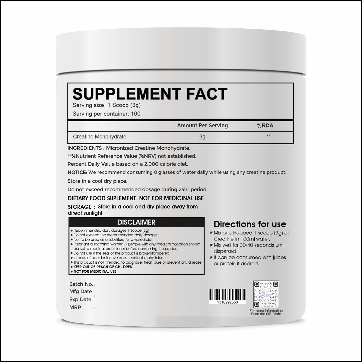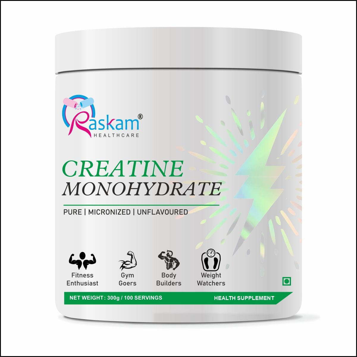Unleash Your Full Potential with Raskam Creatine Monohydrate Powder! Our pure and potent creatine monohydrate formula is designed to boost strength, increase muscle mass, and enhance athletic performance. Ideal for intense training and competitive sports, this powder supports explosive power, improved endurance, and faster recovery. Elevate your workout routine and achieve your fitness goals with Raskam Creatine Monohydrate Powder—your key to unlocking peak performance and reaching new heights in your fitness journey!