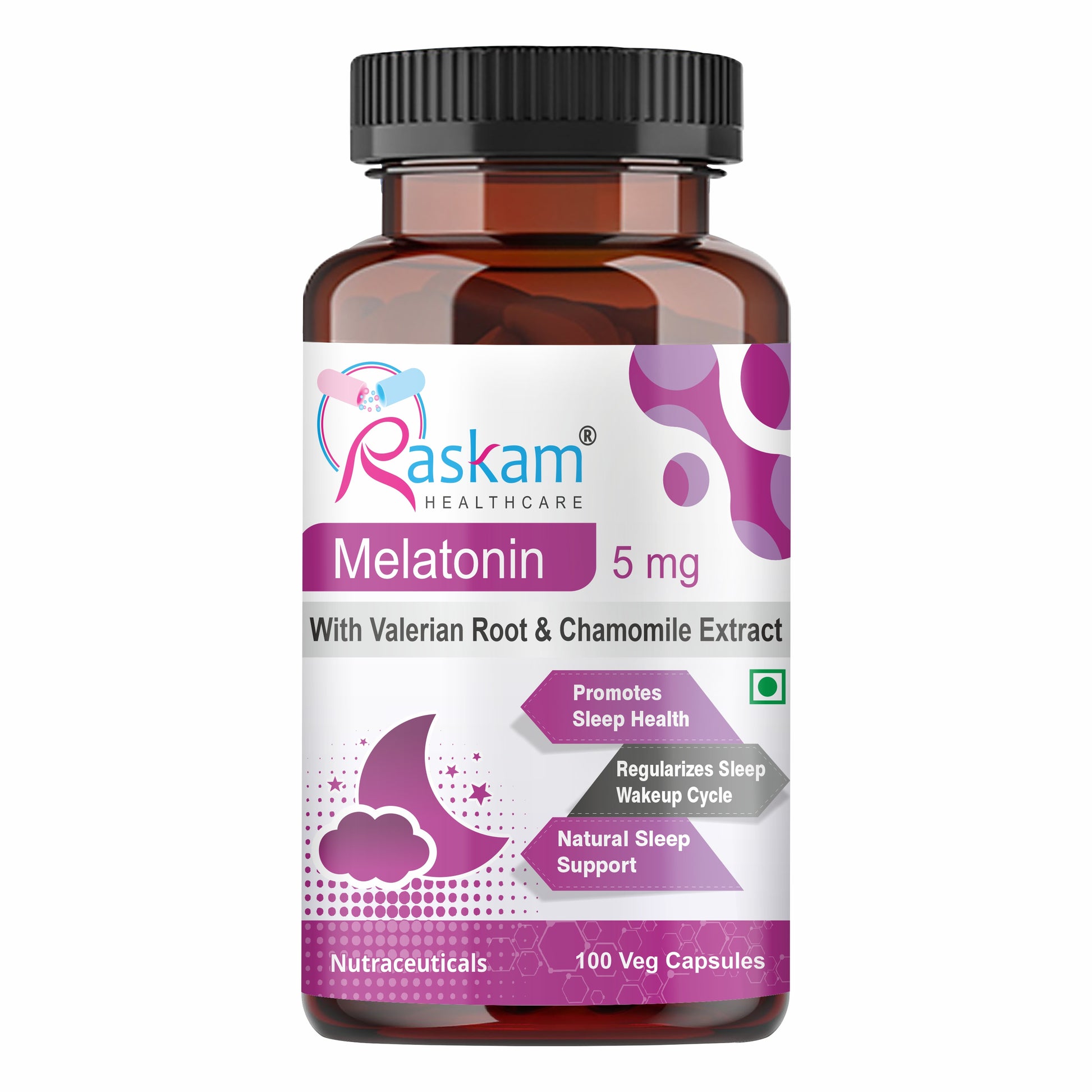 Raskam Melatonin 5mg- 100 capsules- Promotes Sleep and Relaxation
