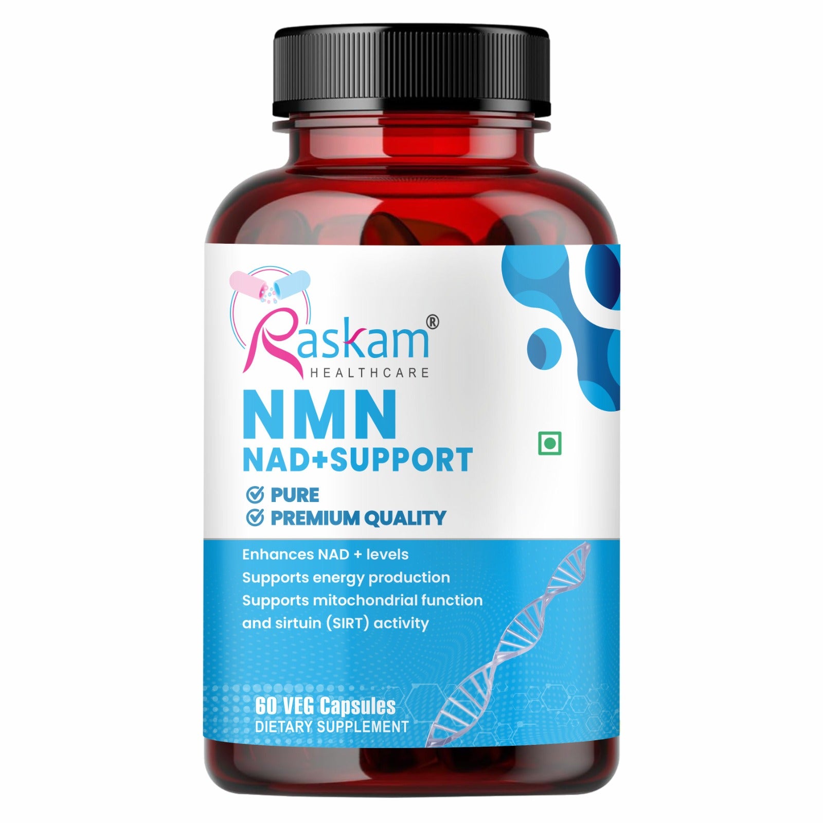 Elevate your vitality with Raskam NMN Supplement 500 mg, a premium-grade 99% pure Nicotinamide Mononucleotide (NMN) designed for modern longevity seekers. Formulated for superior absorption and backed by cutting-edge science, this powerful daily supplement supports your body’s natural energy engines, cellular repair systems, and youthful resilience.