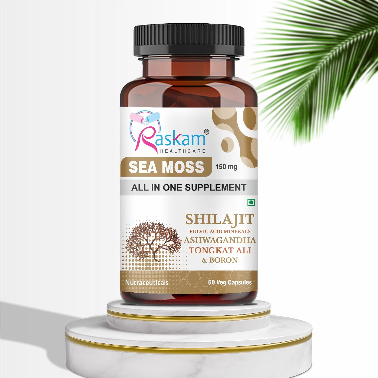 Raskam Sea Moss | 150MG | 60 Capsules - Organic Irish Sea Moss Powder | Bio available Minerals for Thyroid , Skin and Joint Support